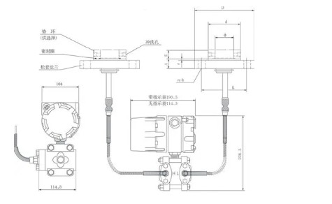 双法兰变送器实质上是一种特殊取压的差压变送器。它是在差压变送器正,负室取压口上接上二条紫铜毛细管,末端是两个用不锈钢膜片封闭的、固定在安装法兰上的膜盒上。