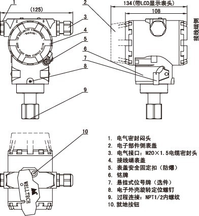 | 2 | NPT1/2 内螺纹 | 表面喷塑铝合金 | |