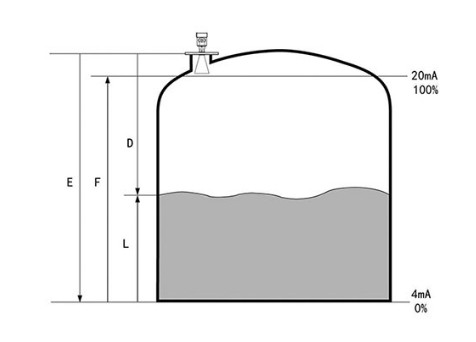 如图1所示,可以得出液位高度(L)的计算公式:L=空标(E)-V0t/2(1)即:液位百分比(l)=(L÷F)×100%